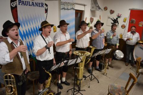 v.l.n.r. Heiko Reinhard (Zugposaune), Rainer Fries (Tenorsaxophon), Marco Gessner (Tuba), Michael "Michl" Gessner (Tenorhorn), Martin Reinhard (Flügelhorn), Christian "Schuster" Gehring und Otto Gessner (Schlagwerk)