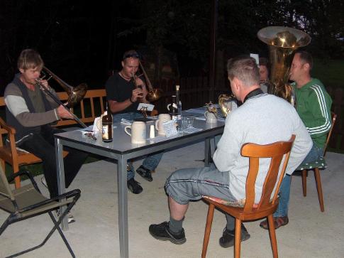Zwanglose Musikprobe mit anschließender Feier im Garten von Rainer